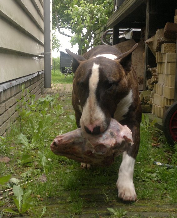 Trui en Han haalden gisteren bij de biologische groeneweg slager 3 giga botten voor onze kids. Zonder een grommetje of snauwtje met zijn drieën intensief elk een bot naast elkaar kauwen: wat zijn we toch een fijn en stabiel roedel!