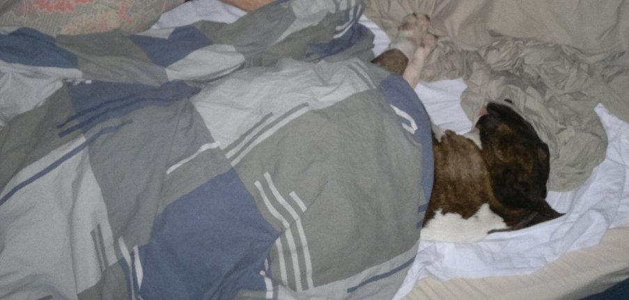 26 december 2011: Bolletje sliep op Kerstavond in bed bij mijn zus en neefje.