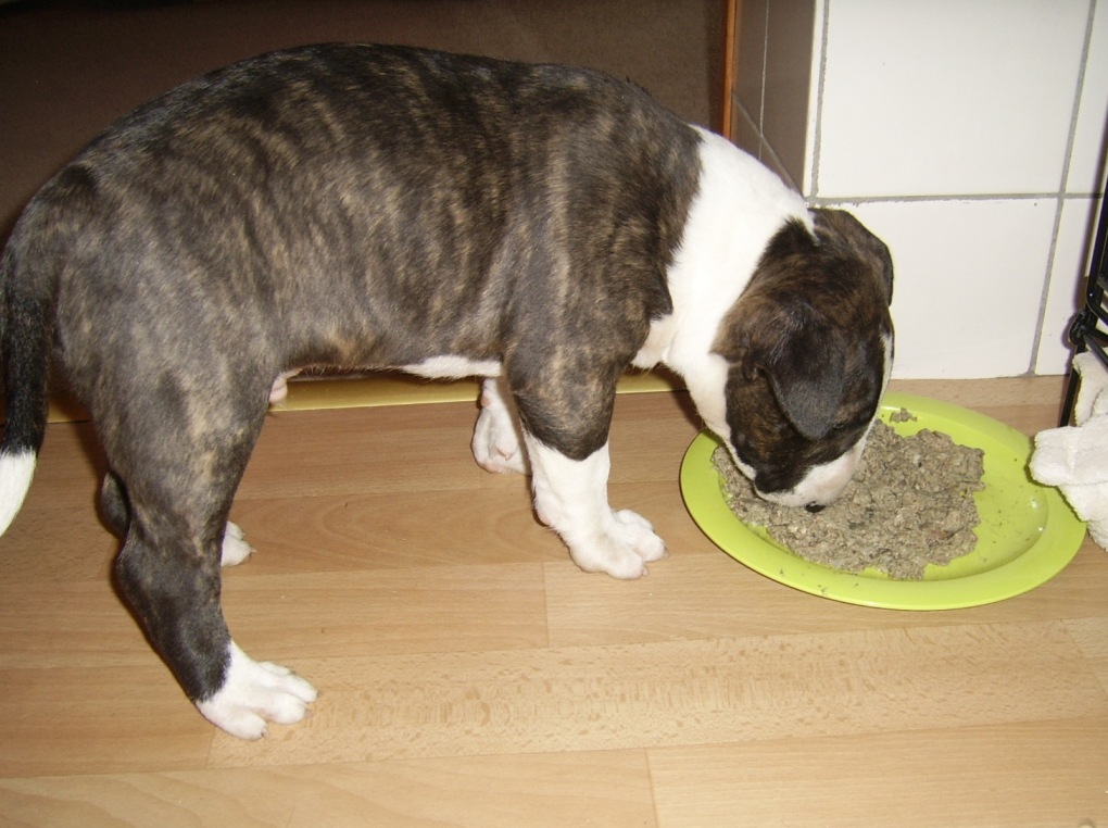 8 juni 2012: Bolletje geniet van zijn eerste schapenkop. Er bestaat geen betere tandenpoetsmethode, na 3 uurtjes knabbelen was zijn gebit weer alsof de grote mensentandjes net doorgekomen waren ;-).