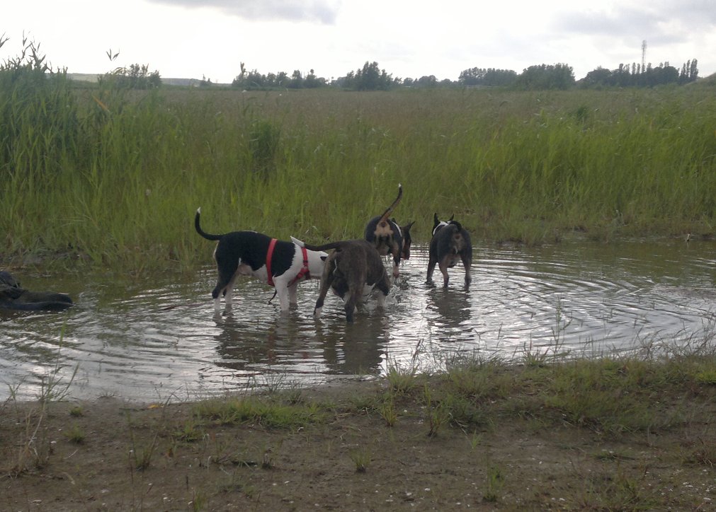 4 januari 2012: vanmorgen zijn Bolletje en ik in het Twiske bij de uitlaatservice van Mirjam op bezoek geweest, alwaar Tess al was (Gladys is loops, dus die kon niet mee). Bolletje ging direct perfect in het roedel van 20 (voor hem) vreemde honden op, waaronder ook meerdere ongecastreerde reuen! Bolletje heeft leuk met de andere honden gespeeld! Mooi hoor, hij is vanaf volgende week welkom om ook met Anubis mee te gaan. Dankjewel Mirjam!